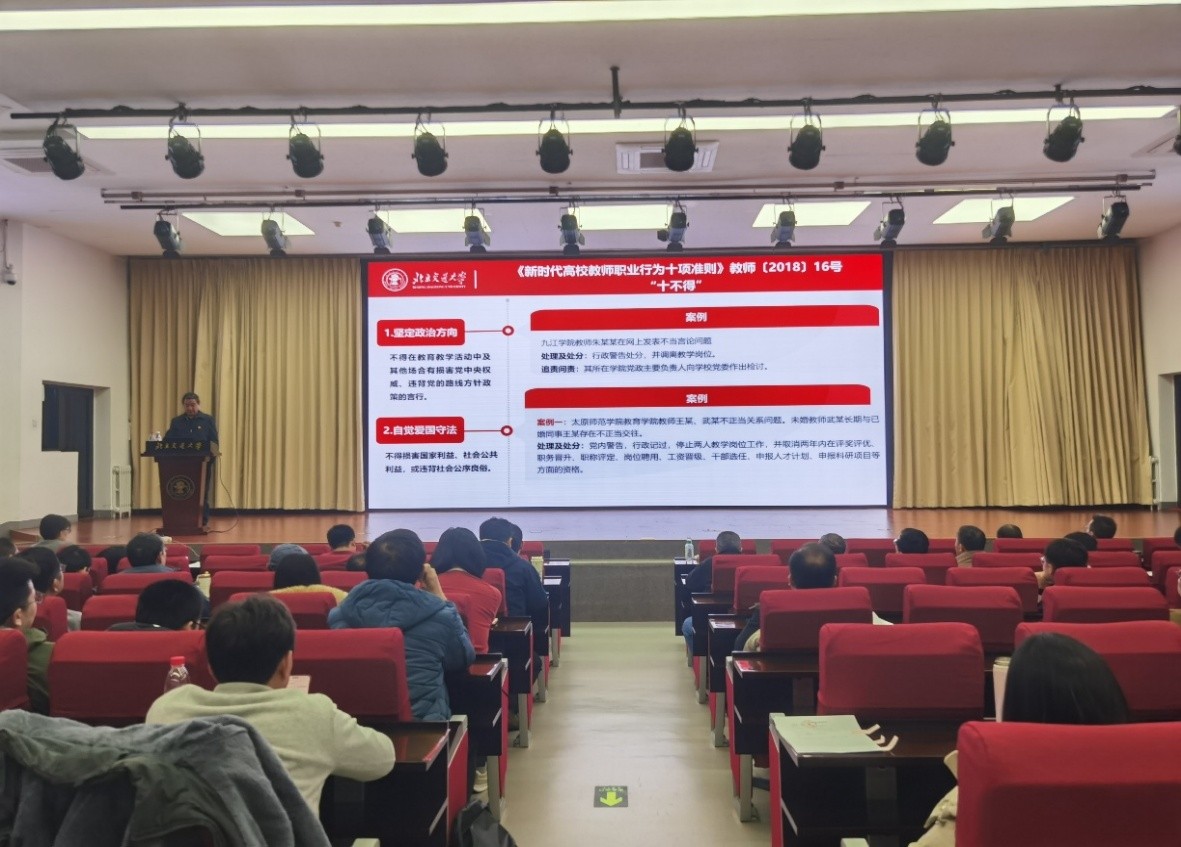 为结合实际工作,进一步提高教师的思想政治水平,更好践行新时代高校教师职业行为十项准则,智能学院于2025年11月27日下午继学校师生党员集中培训2025年秋季学期第二课后召开了全院教师教学规范培训大会和师德师风教育警示大会。会议由学院党委书记闻映红主持,学院全体教职工参加。