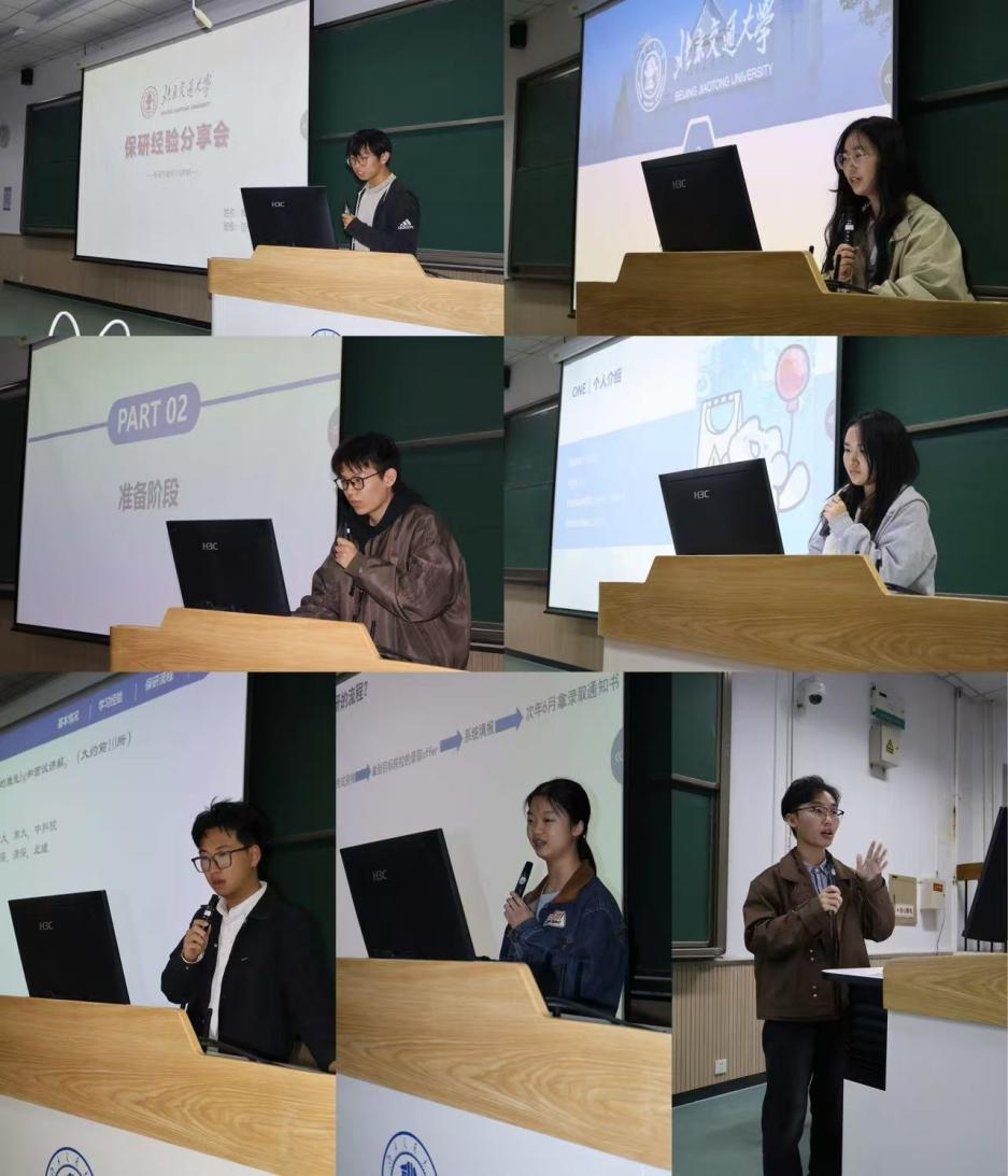 本次分享会特邀李淑慧、李梦燃、黄正昊、郎昊轩、贾新宇、生婉如和董江澜等七位在学业成绩与综合能力方面表现优异的学长学姐担任主讲人,为与会同学提供专业化、体系化的保研指导。七位主讲人结合保研经历,系统梳理了普通推免与专项保研的申请流程与考核重点,围绕院校选择、导师联系、笔试面试等环节分享实用经验。通过典型案例,剖析常见问题及应对策略,建议同学们提前研读政策、结合自身实际明确方向,并通过夯实专业与科研实践提升竞争力。