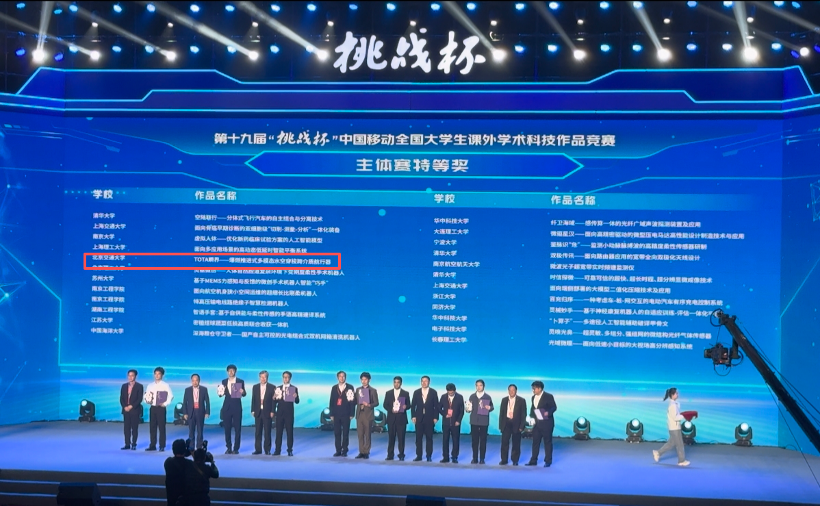 近日,第十九届“挑战杯”全国大学生课外学术科技作品竞赛终审决赛在南京落下帷幕,智能学院师生团队凭借项目《TOTA瞬界--爆燃推进式多模态水空穿梭跨介质航行器》勇夺主体赛全国特等奖,展现出学院在科技创新与人才培养方面的雄厚实力。